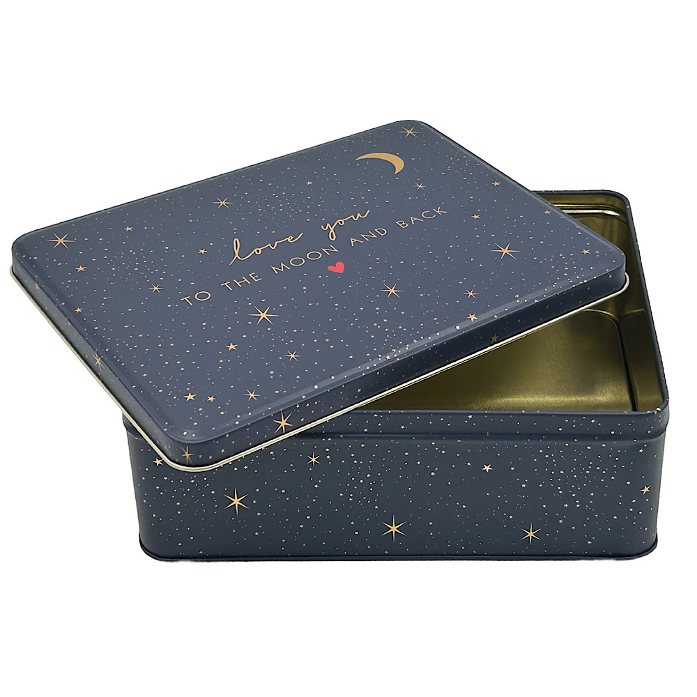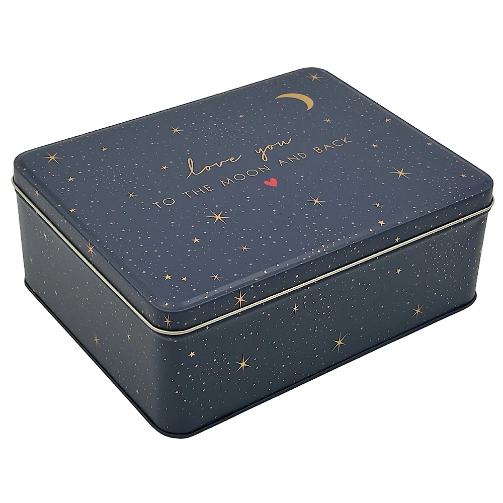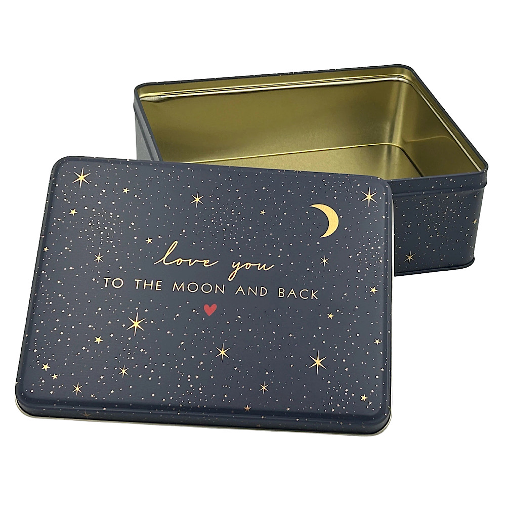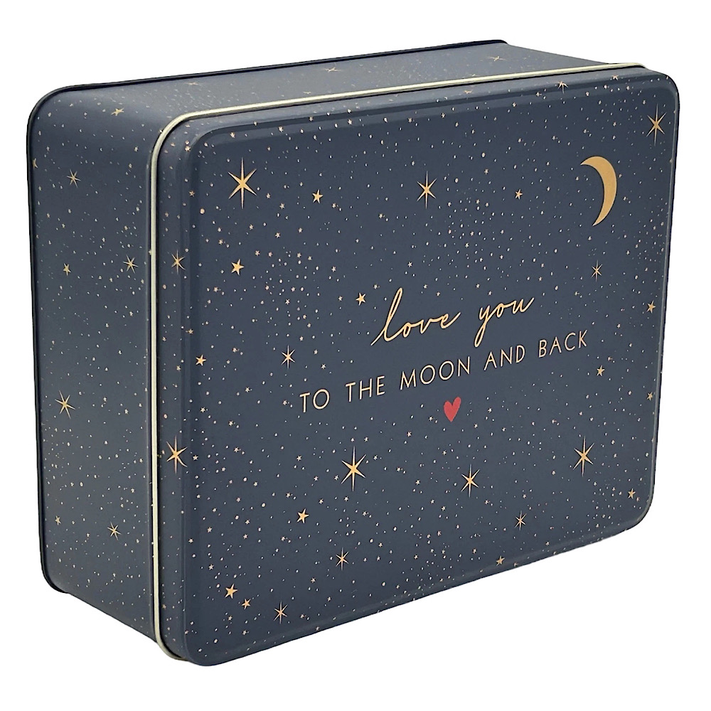 - Liebevoll gestaltete rechteckige Vorratsdose – Motiv love you to the moon and back