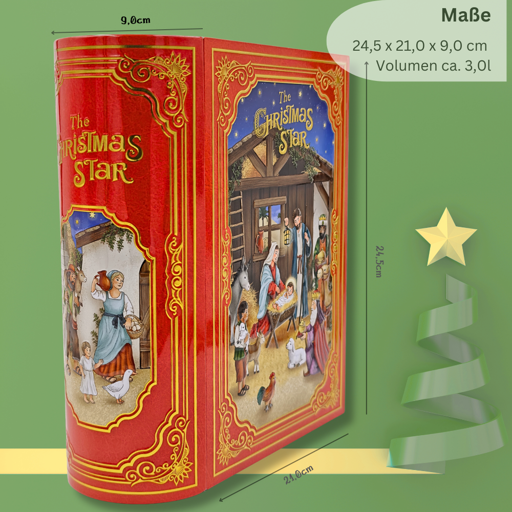 Große Buch Dose Weihnachtsstern – Aufbewahrungsdose, Weihnachtsdose – aufwändig geprägt und bedruckt
