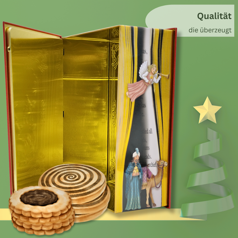 • Große Buchdose Tea Book Aufbewahrungsdose, Weihnachtsdose, aufwändig geprägt und bedrucktGroße Buchdose Tea Book Aufbewahrungsdose, Weihnachtsdose, aufwändig geprägt und bedruckt