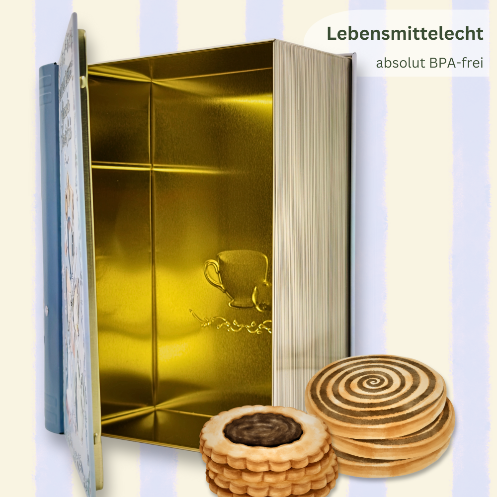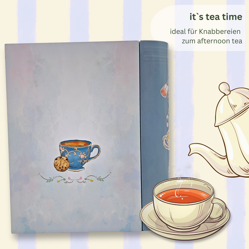 • Große Buchdose Tea Book – bezaubernde Keksdose mit teatime Motiven