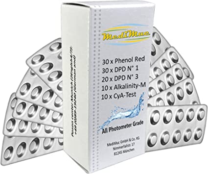 Wassertester Premium Rapid Methode Chlor pH, mit 20 Testtabletten 10 x Phenol Red und 10 x DPD1