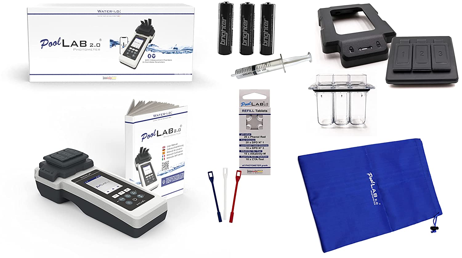 • EINFACH UND PRÄZISE: Der Pooltester ist sehr einfach zu bedienen. Sie gelangen nach nur 2 Tastenschritten zum Messergebnis. Dank der drei parallelen Messkammern können Sie bis zu drei Wasserwerte parallel messen. Die 3-fach-Küvette ist austauschbar.
