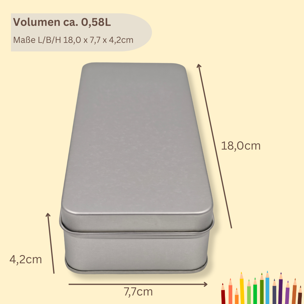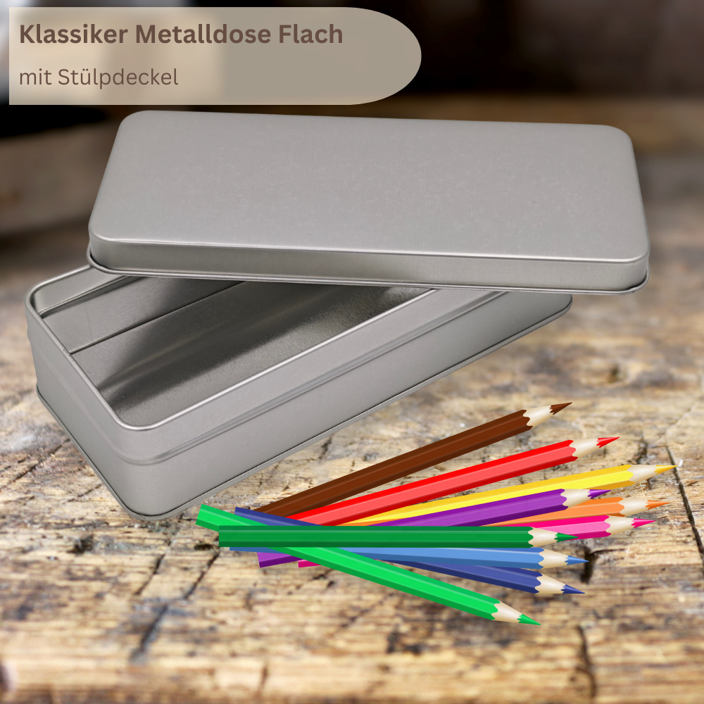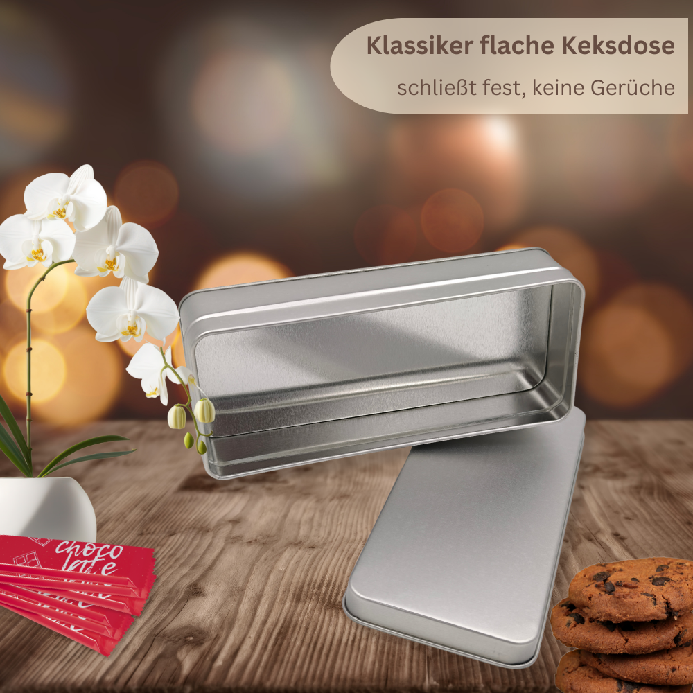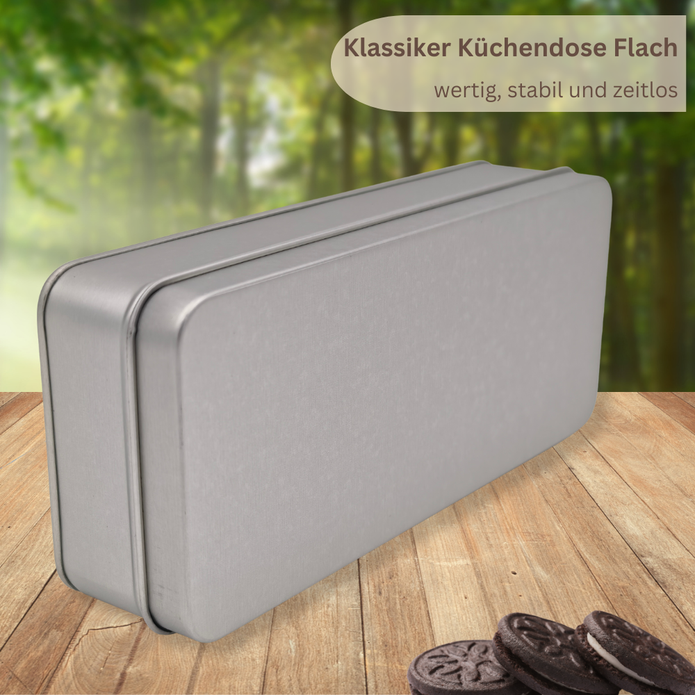 - Unsere vielseitige rechteckige, flache Metalldose ist eine praktische Vorratsdose für trockene Lebensmittel oder Utensilien