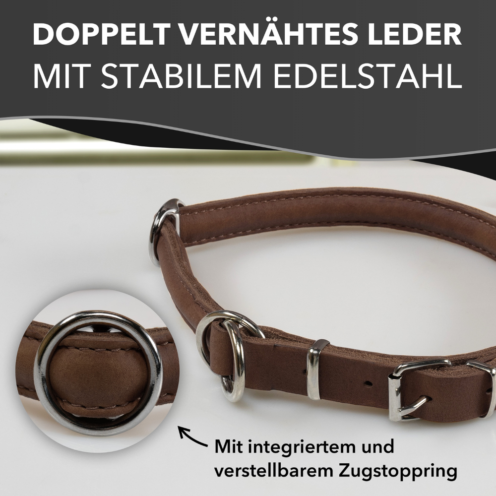 Rund & Weich Zugstopp Hundehalsband Lederhalsband mit Zugbegrenzung und verstellbarer Schnalle