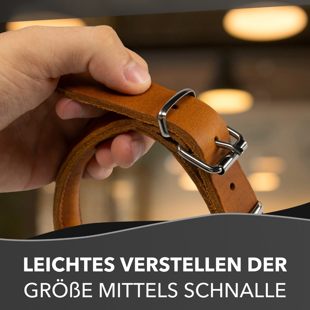 - Durch das weiche Leder ist das Zughalsband besonders fellschonend, vermeidet Haarbruch und bietet idealen Tragekomfort
