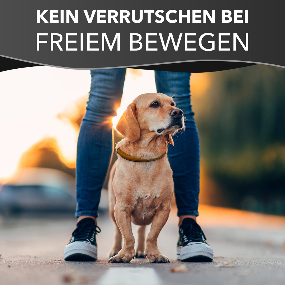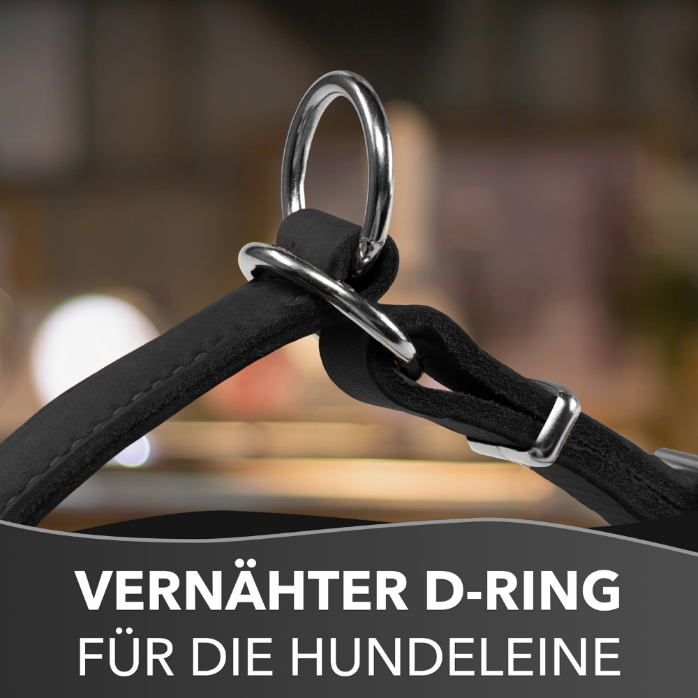 - Der integrierte Stoppring dient zur optimalen Anpassung an den Hund und verhindert ein ungewolltes Zusammenziehen der Halsung