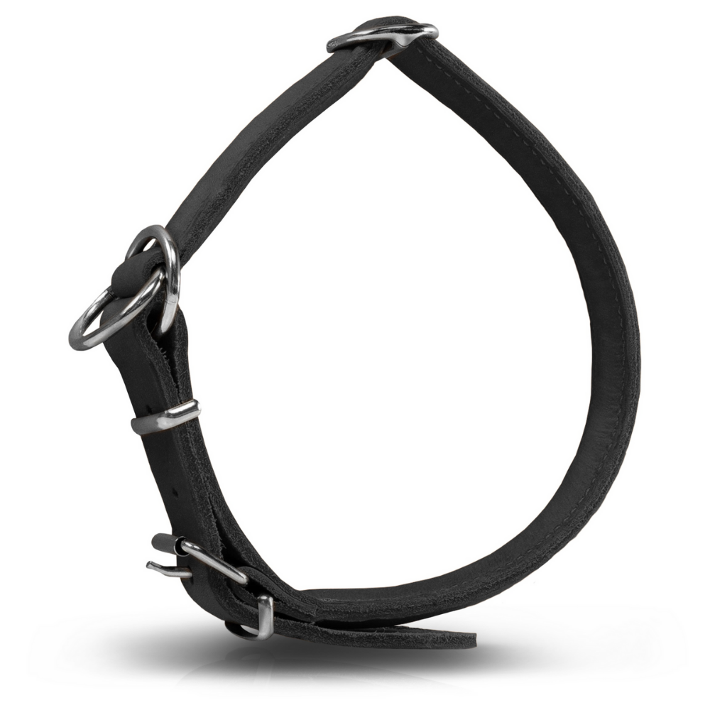 Rund & Weich Zugstopp Hundehalsband Lederhalsband mit Zugbegrenzung und verstellbarer Schnalle – schwarz, M – 50cm