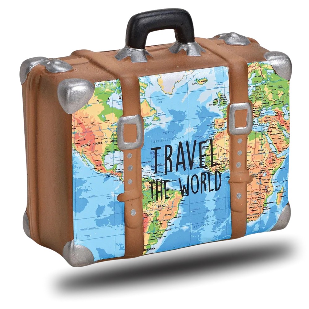 - REISELUST Diese Spardose zeigt den Schriftzug “TRAVEL THE WORLD” – ein inspirierendes Geschenk für alle, die von einer Reise in den Urlaub oder einem schönen Kurz-Trip träumen. Leichte Unregelmäßigkeiten und kleine Schrammen sind material- bzw. fertigungsbedingt und üblich.