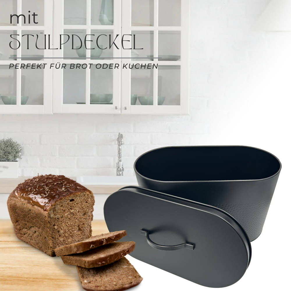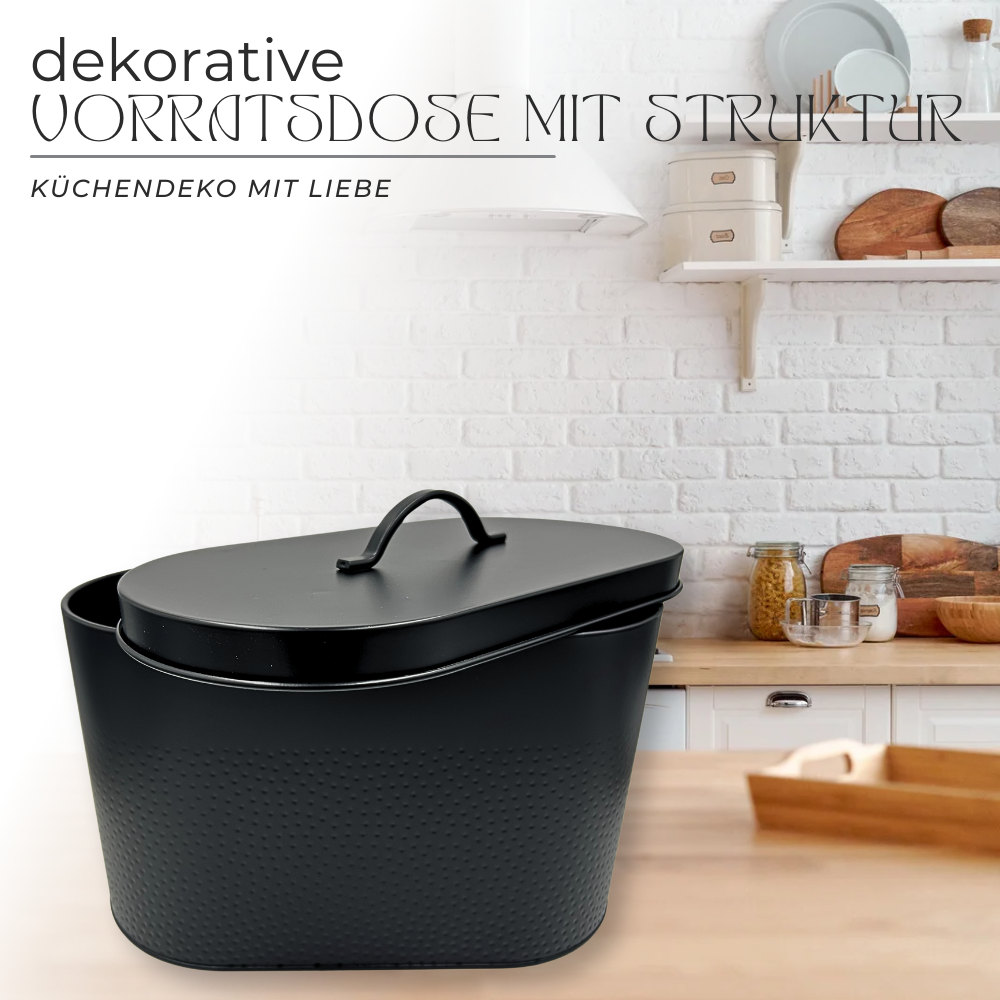 Vorratsdose Brotdose, Lebensmitteldose KAYA strukturierte Oberfläche, schwarz pulverbeschichtet, oval