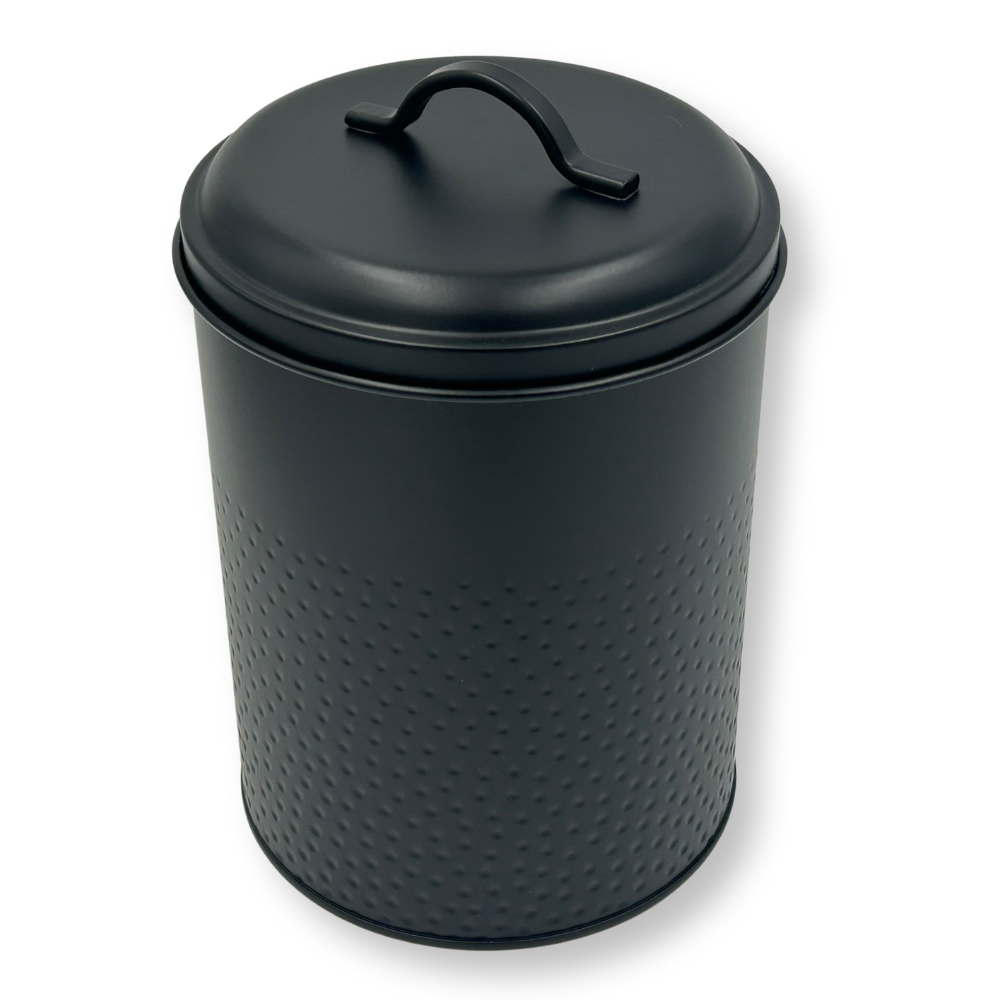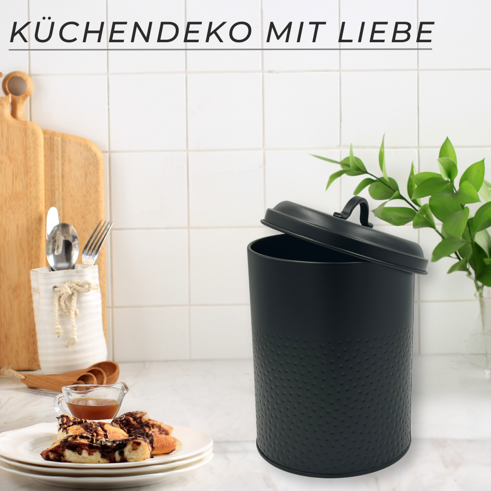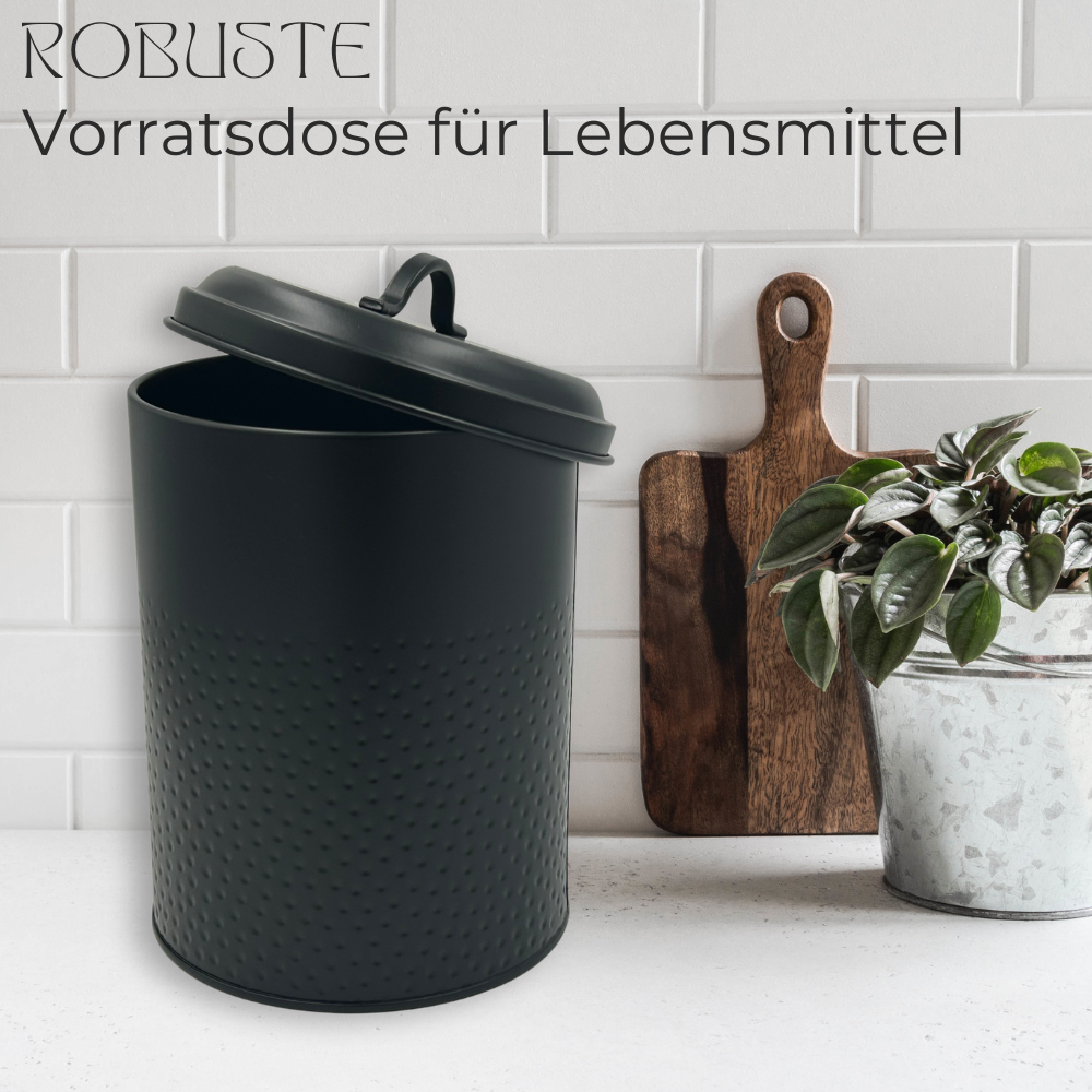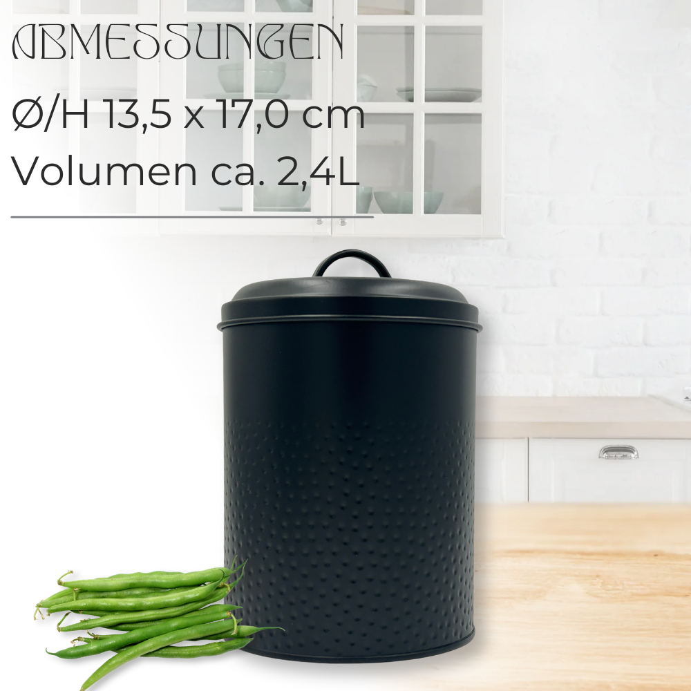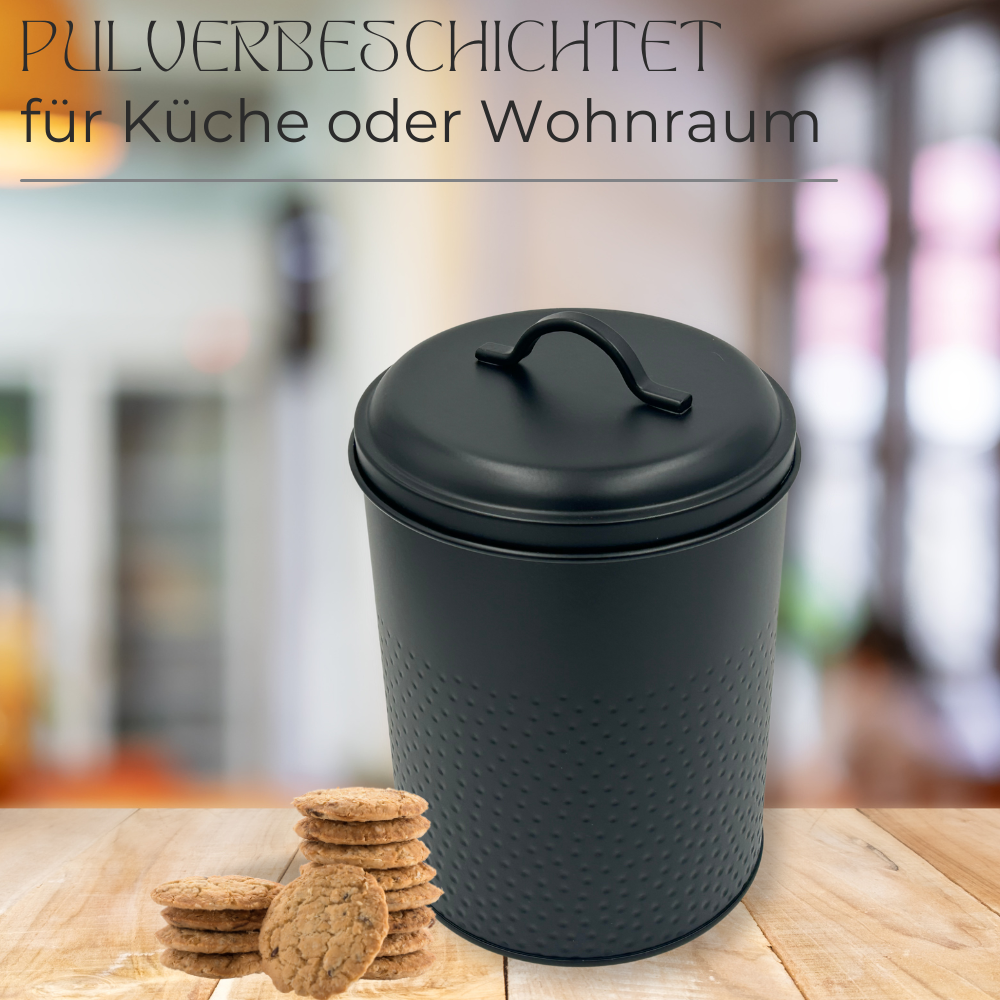 Vorratsdose: Keksdose, Lebensmitteldose Yuma strukturierte Oberfläche, schwarz pulverbeschichtet, rund