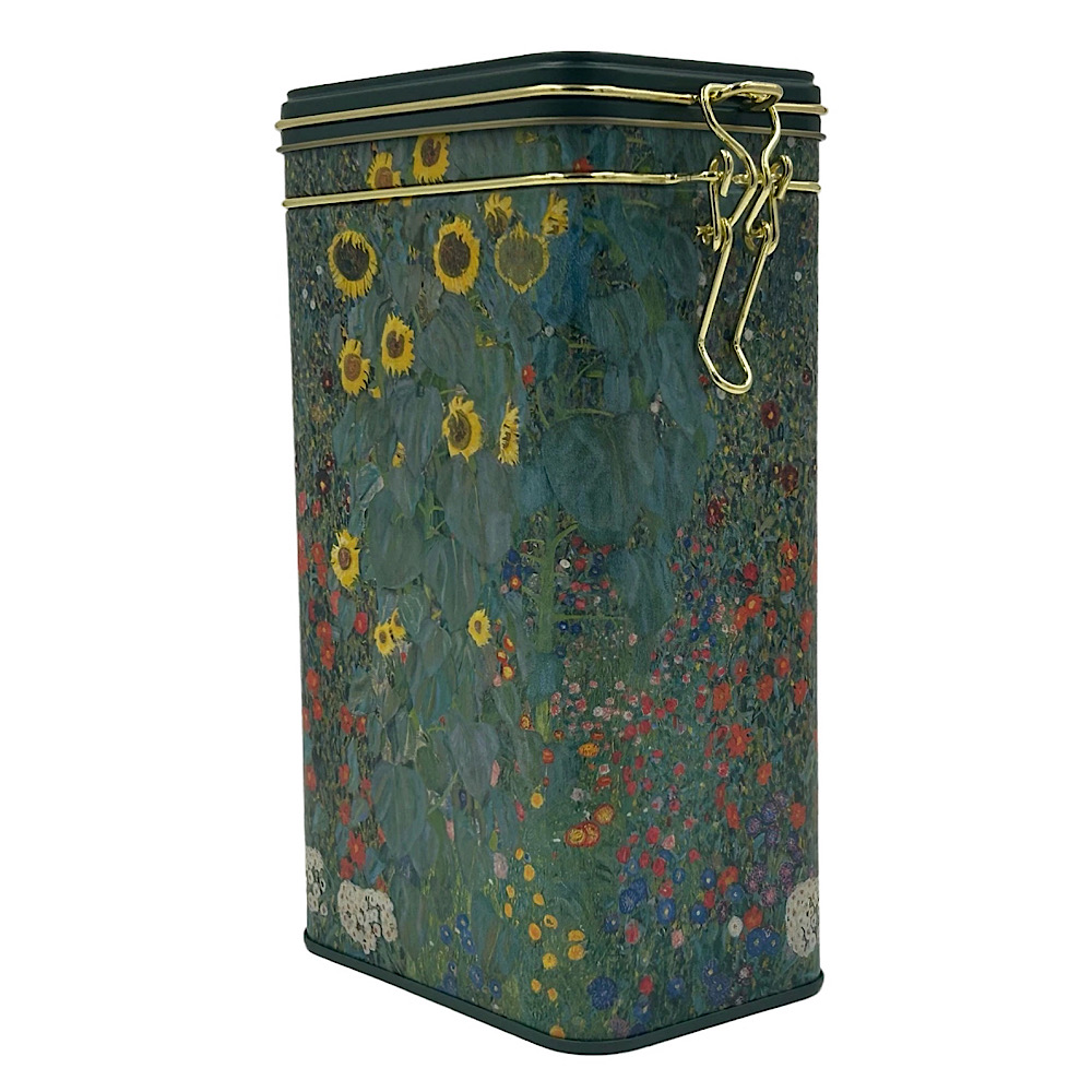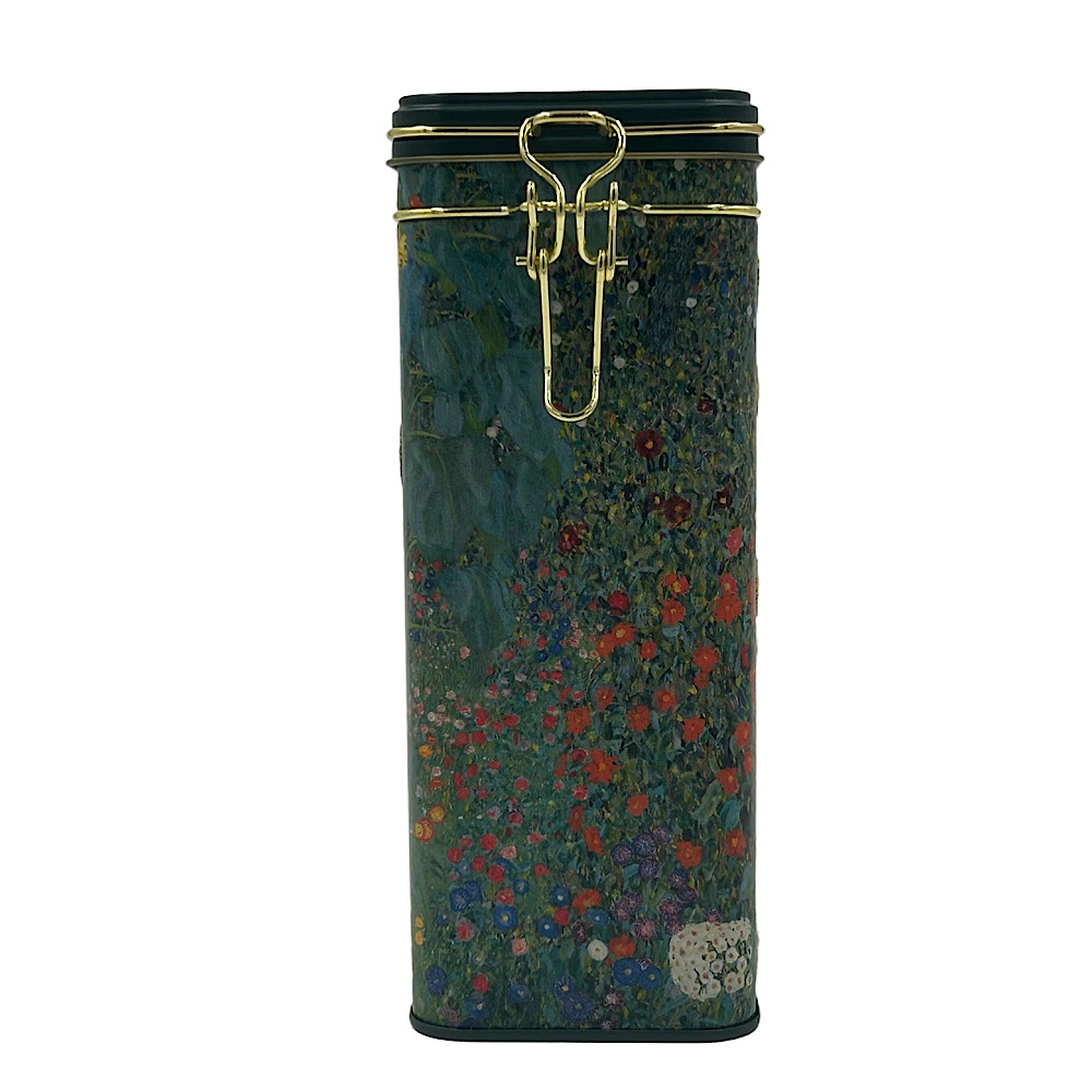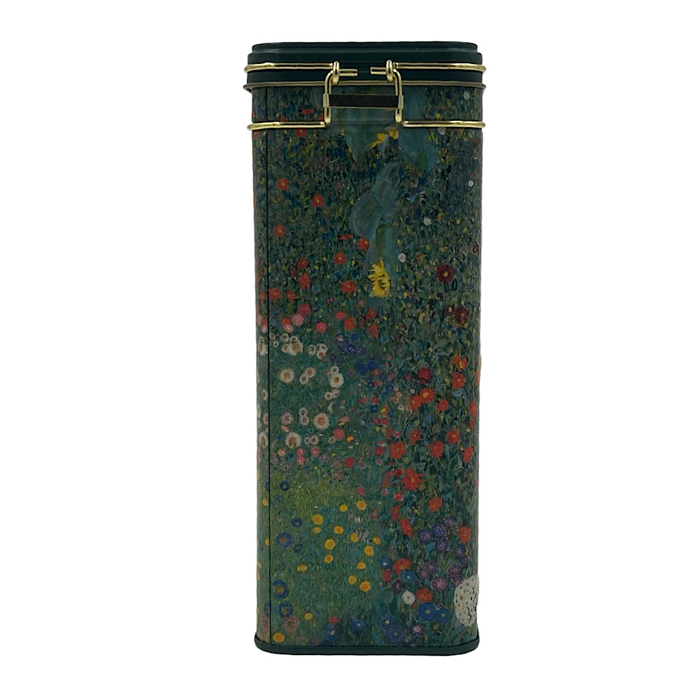 Vorratsdose von Fridolin – Kaffeedose – geprägt und aufwendig lackiert – Künstler: Gustav Klimt Motiv: Bauerngarten