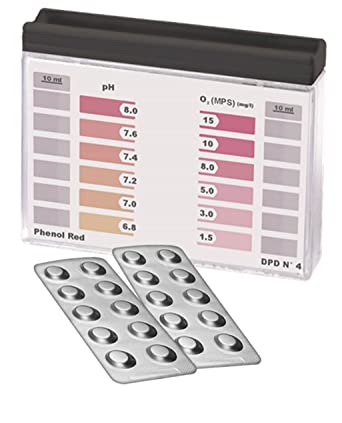 - Lieferumfang: 1 x Wassertester mit 10 x DPD N°4 und 10 x Phenol Red Messtabletten