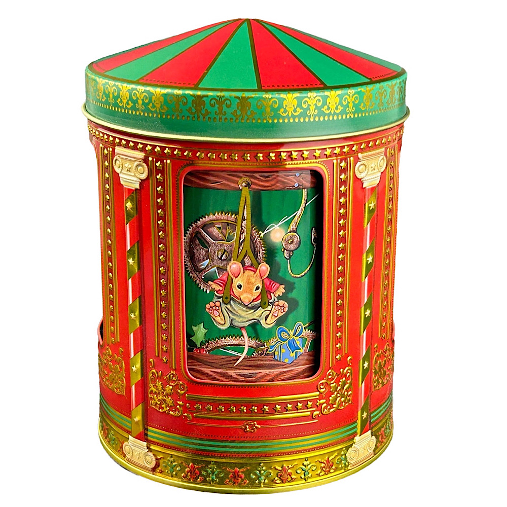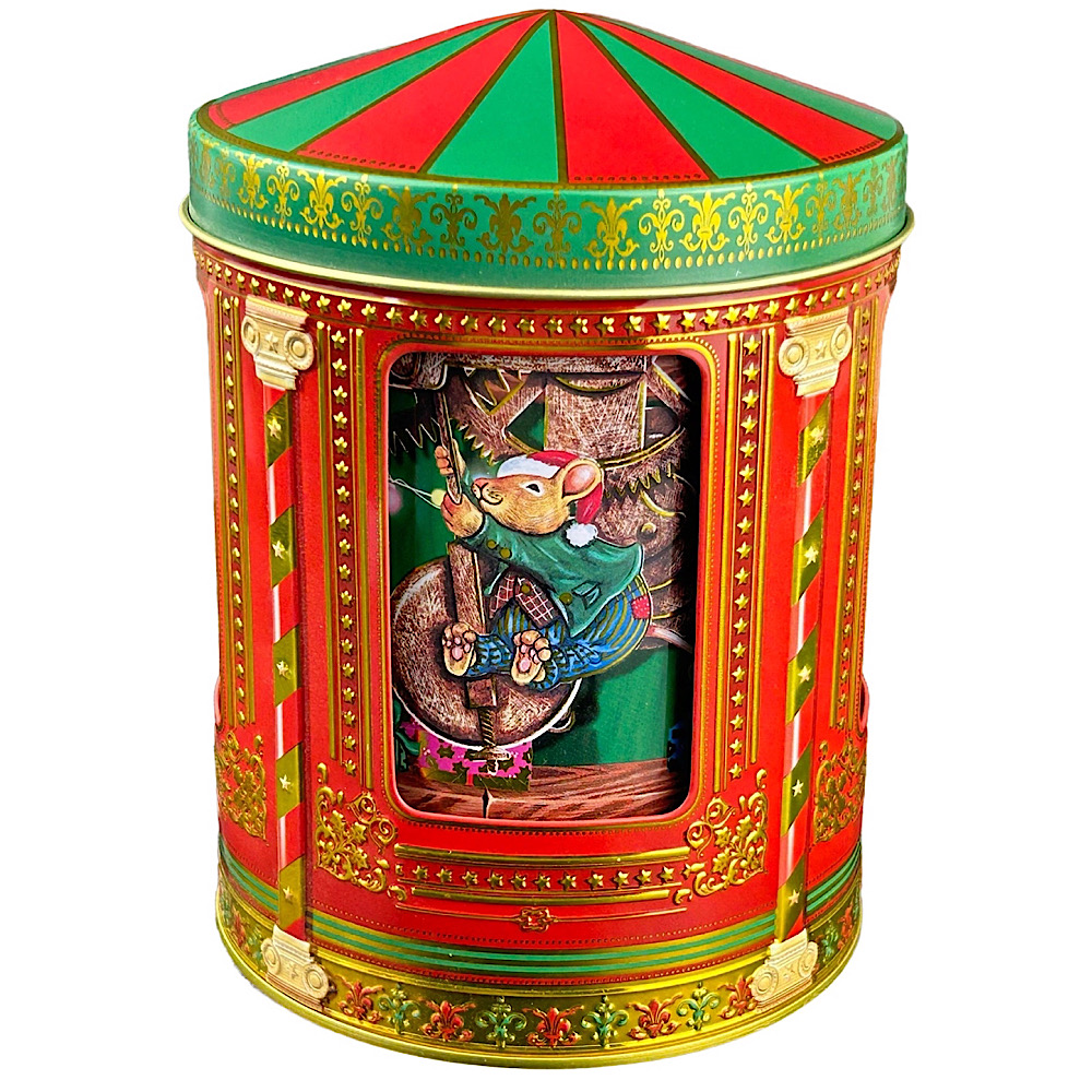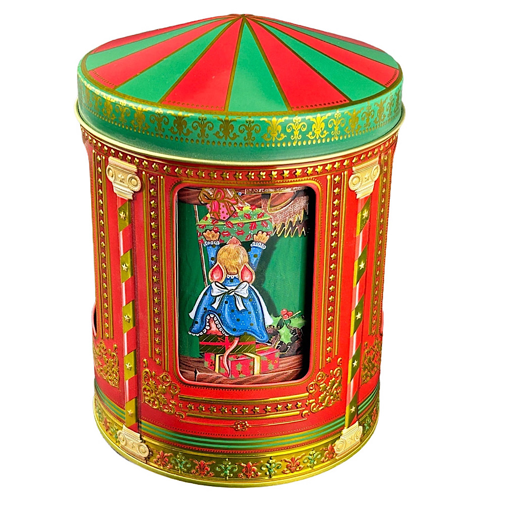 - MediMuc präsentiert eine aufwändig gearbeitete Dose in Form einer Spieluhr mit dem Motiv: lustige Mäuse
