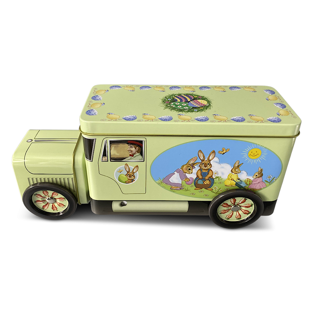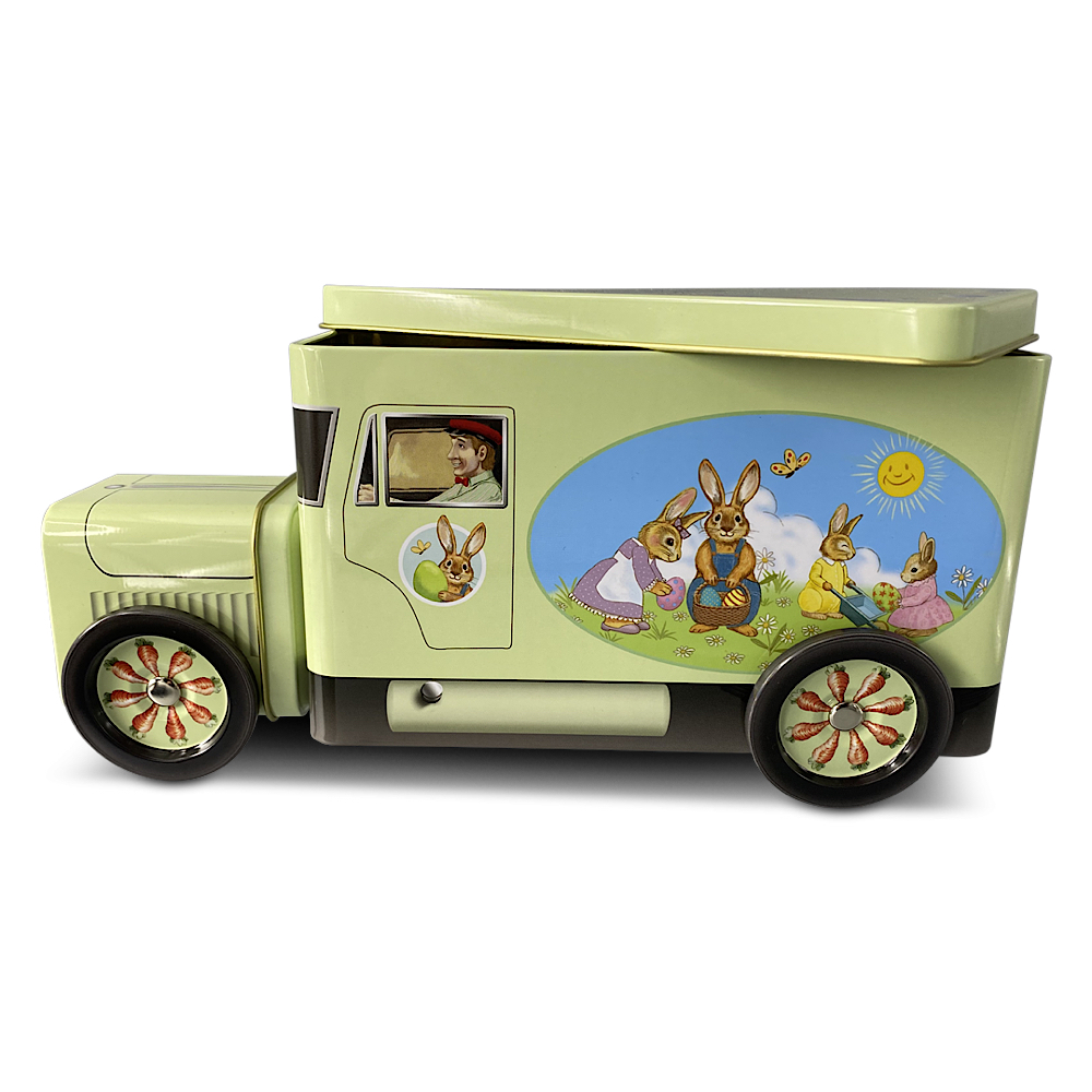 - Wunderschöne Keksdose mit Motiv: Easter Truck – Two in One Dose – Der Lieferwagen ist mit Ostereiern unterwegs