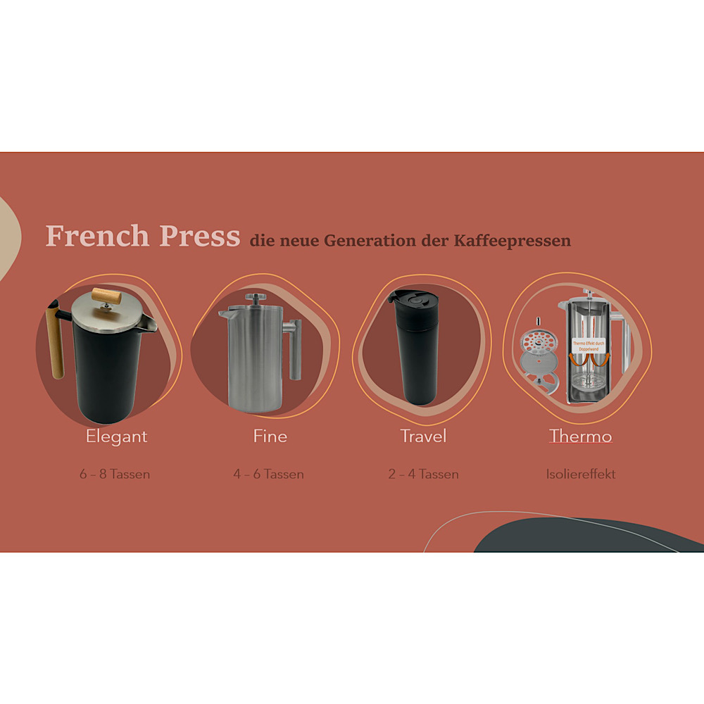 - Thermo French Press Elegant- Genießen Sie länger heißen Kaffee im das Büro, zu Hause in stilvoller Eleganz!