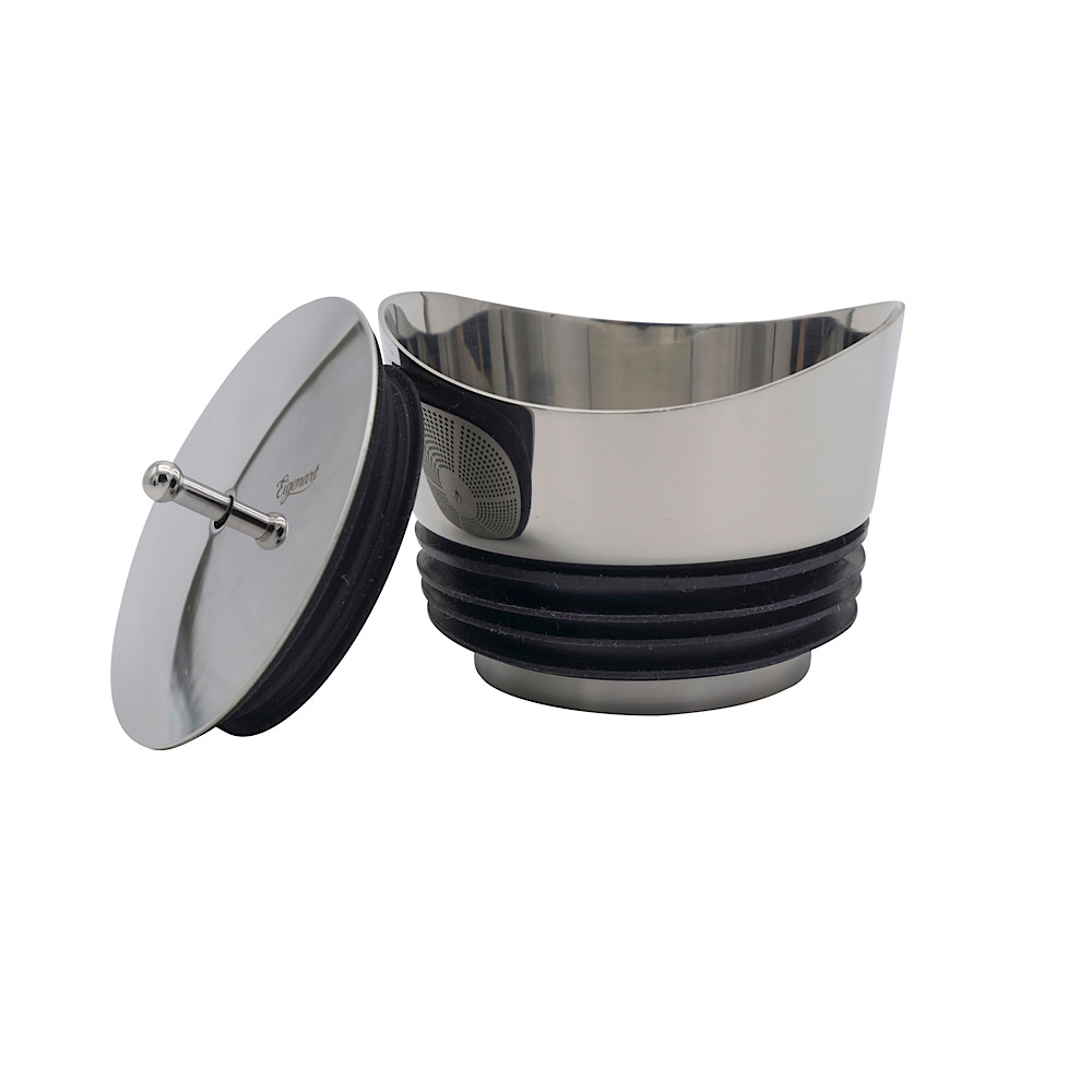 - Die dekorative, aus veganem Leder gefertigte Manschette schützt die Hände überdies wirksam vor Hitze, der mit einem Filter versehene Edelstahl-Kippdeckel dagegen vor Tropfen beim Ausschenken