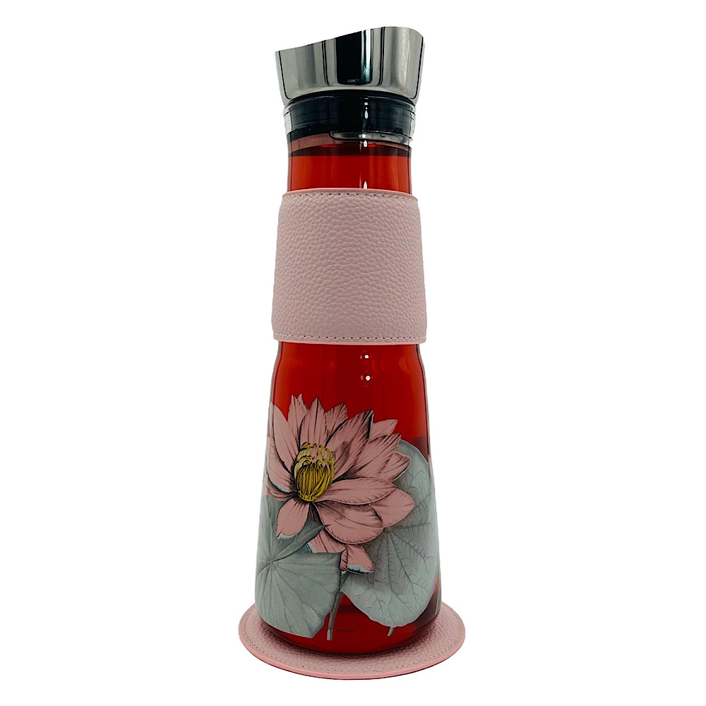 Karaffe EVE – Padma Rosa – mit herausnehmbarem Edelstahlsieb, Kunstleder Manschette und Untersetzer – Füllmenge 1,25L